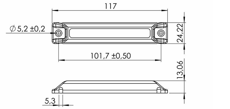 Размер: 117 х 24,22 х 13,06 мм.